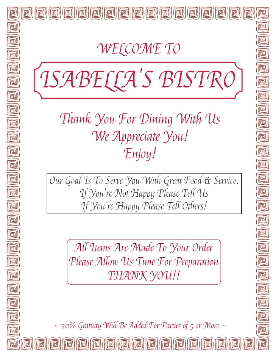 Welcome to Isabella's Bistro, the hidden gem of Englewood, Florida. This charming eatery, located at 6800 Placida Rd Unit 1A, offers a delightful plate of Italian culinary tradition with a modern twist. The menu boasts pasta classics like the rich Bolognese Meat Sauce and creamy Carbonara, each dish made with love and authenticity.